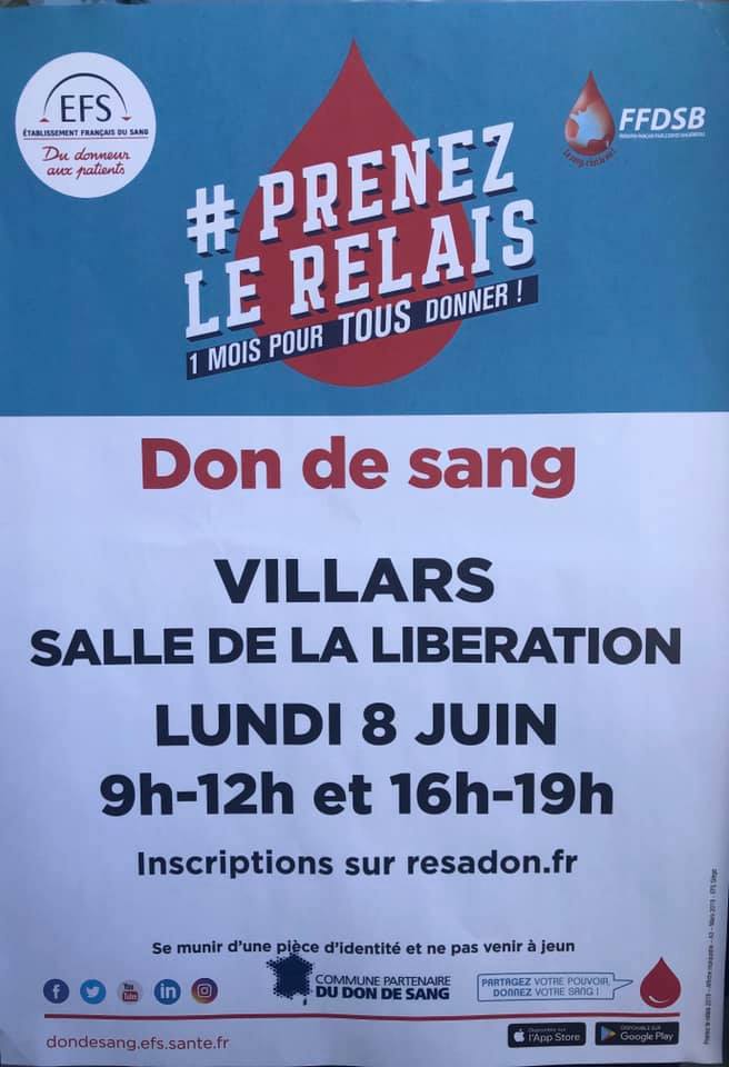 Pendant la période de déconfinement, continuons à donner notre sang et à sauver des vies comme je l’ai fait ce lundi à Villars !