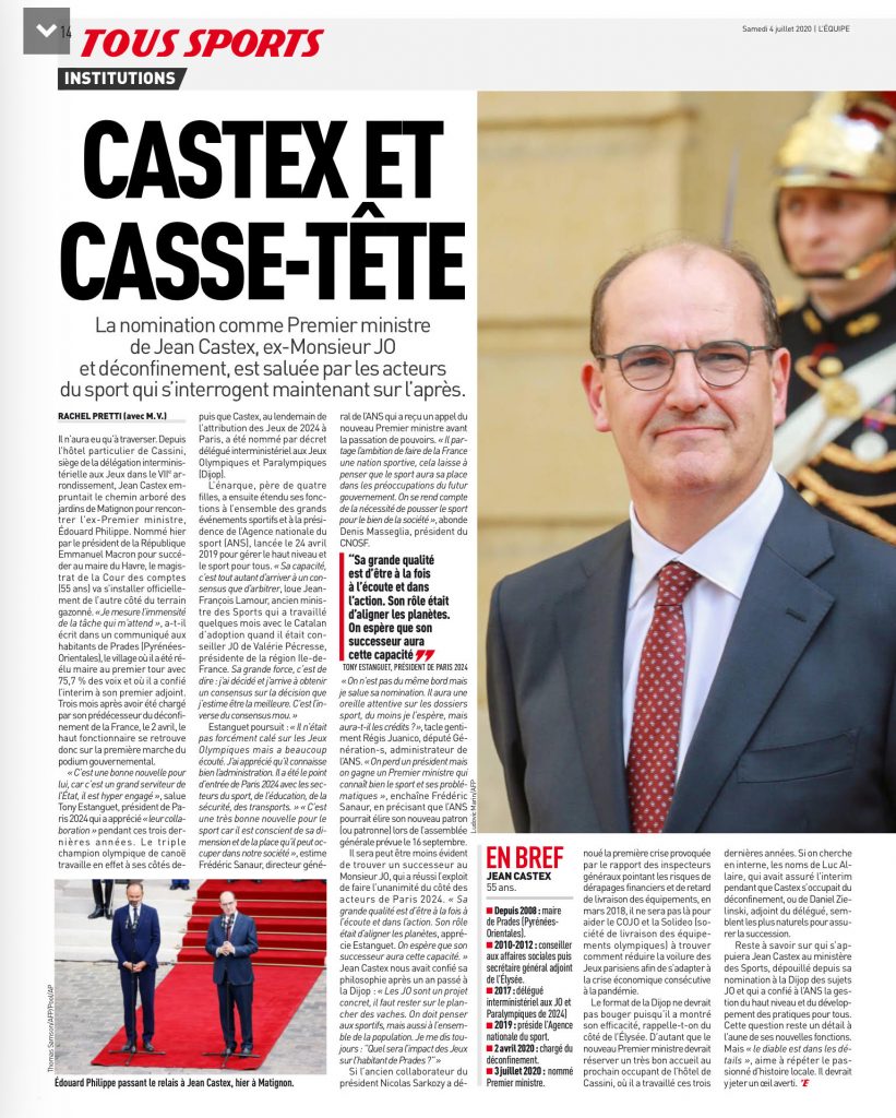 Une bonne nouvelle pour le sport français?? Avant d’être chargé du déconfinement, le poste qui l’a mené à Matignon, Jean Castex était le « monsieur » Jeux olympiques de l’État français… Lire la suite
