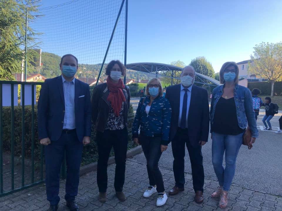 – à l’école du Fay de Saint-Jean-Bonnefonds avec le maire Marc Chavanne et la directrice Catherine Roméas