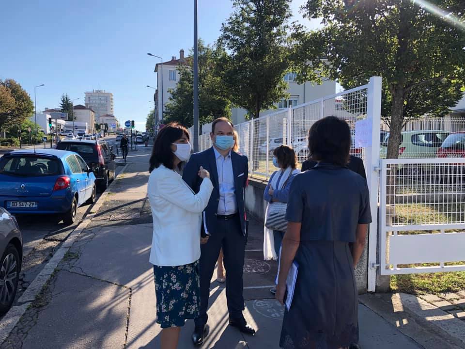 – à l’école élémentaire de la Verrerie à la Montat en présence de madame la préfète de la Loire, Catherine Séguin et de la Directrice académique adjointe Martine Petit
