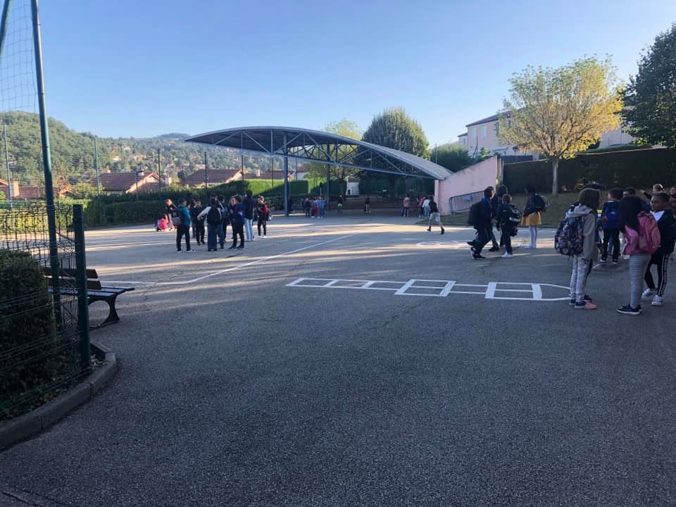 – à l’école élémentaire Georges Sand de Saint-Priest-en-Jarez, en présence du maire Christian Servant, de sa 1ère adjointe Michèle Bisaccia et de sa conseillère déléguée à l’éducation, Florence Joly, nous avons été accueillis par la nouvelle directrice Céline Choux