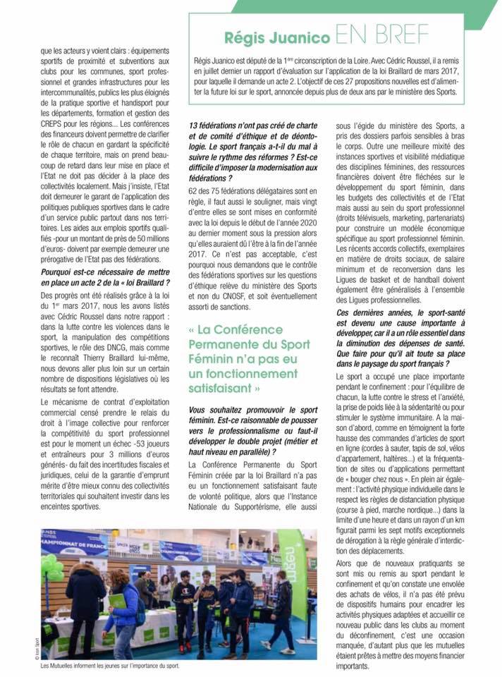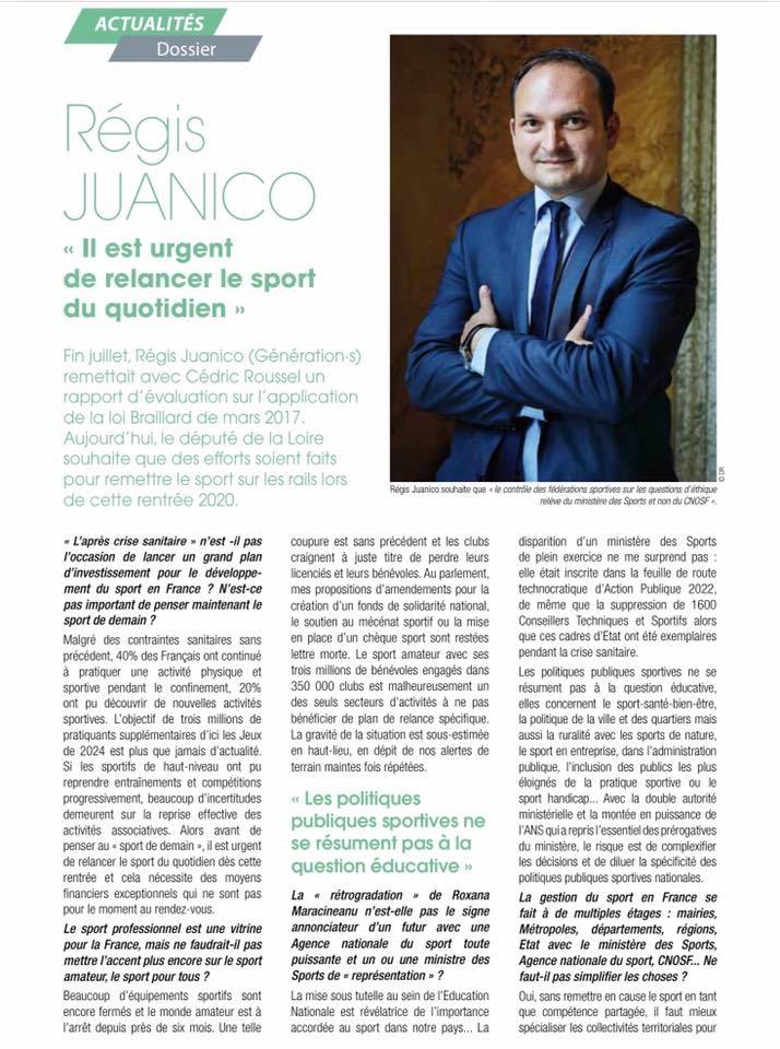 Crise sanitaire, soutien au sport amateur, service public du sport, éthique et transparence des fédérations sportives, compétence partagée entre les collectivités locales, acte 2 de la loi « Braillard » et future loi sport et société, développement du sport féminin, place de l’activité physique et sportive à l’école, sport-santé-bien-être… retrouvez mon interview de rentrée dans SPORTMAG.