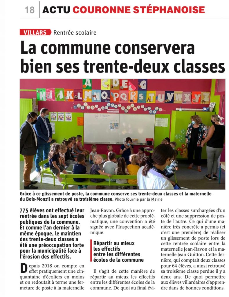 Nous menions la bataille, avec Jordan Da Silva et son équipe municipale depuis le mois de mai, pour obtenir l’ouverture d’une 3ème classe au sein de l’école maternelle du Bois Monzil, à Villars.