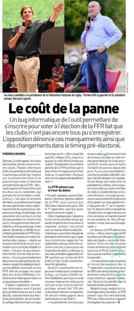 Je me fais donc le porte-voix des Présidents qui exigent une plus grande transparence dans le processus électoral en cours à la FFR, qui réclament que les électeurs soient respectés et qui demandent une véritable période de trois semaines, comme prévu, pour l’inscription sur la plateforme de recueil des pouvoirs.