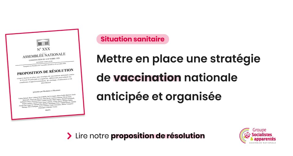 Nous déposons aujourd’hui une proposition de résolution visant à mettre en place une stratégie de vaccination nationale contre le COVID-19, anticipée et organisée, définissant précisément les conditions d’approvisionnement, de stockage, d’allocation et de distribution.