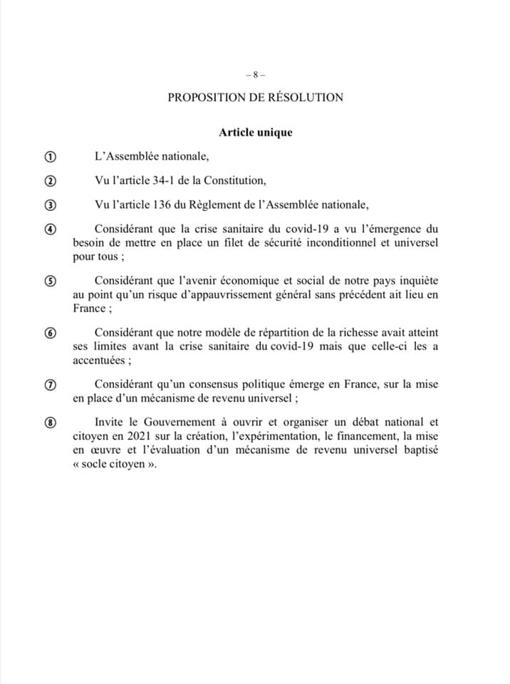 Pour rappel, la majorité LREM avait rejeté au début de l’année 2019 une proposition de loi de notre groupe Socialistes et Apparentés que j’avais signé visant à expérimenter un revenu de base sur trois ans, versé inconditionnellement dès 18 ans :