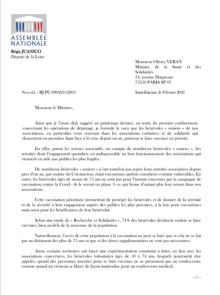 Faire vacciner les membres d’association « seniors », c’est la volonté du député de la Loire Régis Juanico. Il a écrit au gouvernement en ce sens.