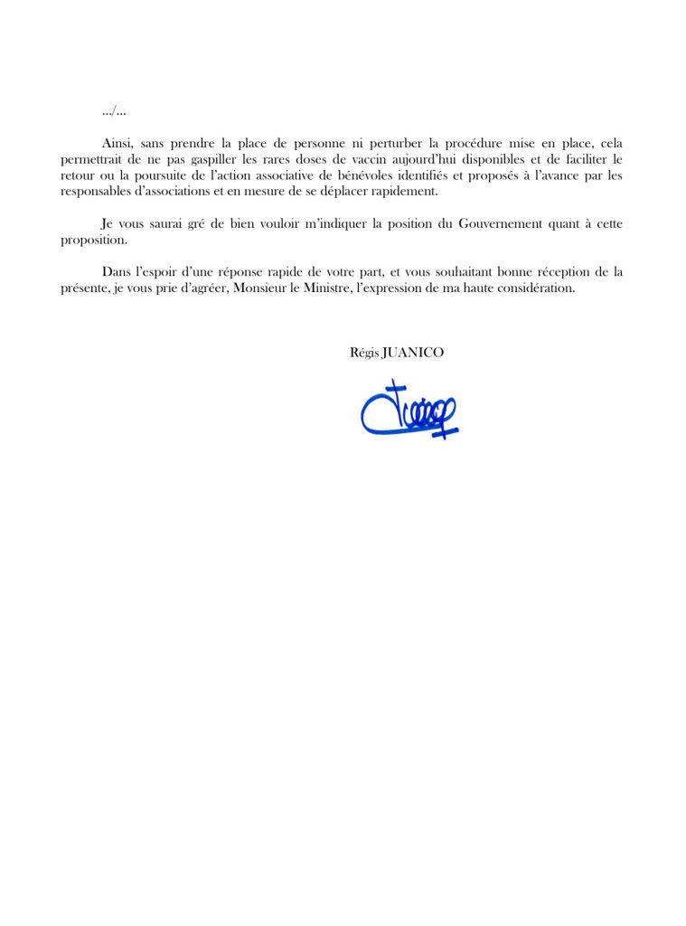 Ainsi, sans prendre la place de personne ni perturber la procédure mise en place, cela permettrait de ne pas gaspiller les rares doses de vaccin aujourd’hui disponibles et de faciliter le retour ou la poursuite de l’action associative de bénévoles identifiés et proposés à l’avance par les responsables d’associations et en mesure de se déplacer rapidement.