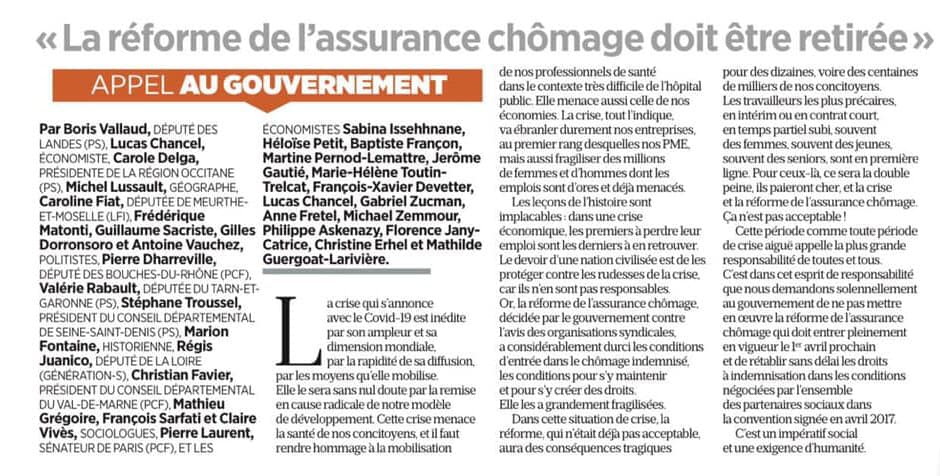 Décidément, Madame Borne est têtue… Reportée deux fois, la « réforme » de l’assurance chômage est à nouveau sur les rails, en dépit de la tempête économique avec la perspective d’une suppression de 400 000 emplois entre 2020 et 2022.