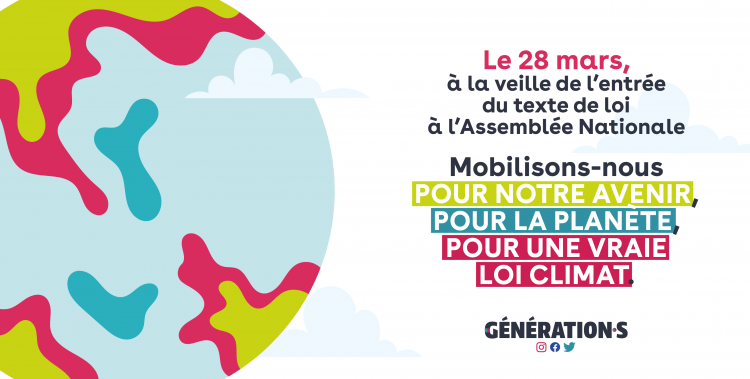Pour notre génération et les générations futures, nous nous mobiliserons à l’Assemblée nationale à partir du 29 mars, et ce dimanche 28 mars dans la rue, avec les citoyens, pour exiger une Vraie Loi Climat