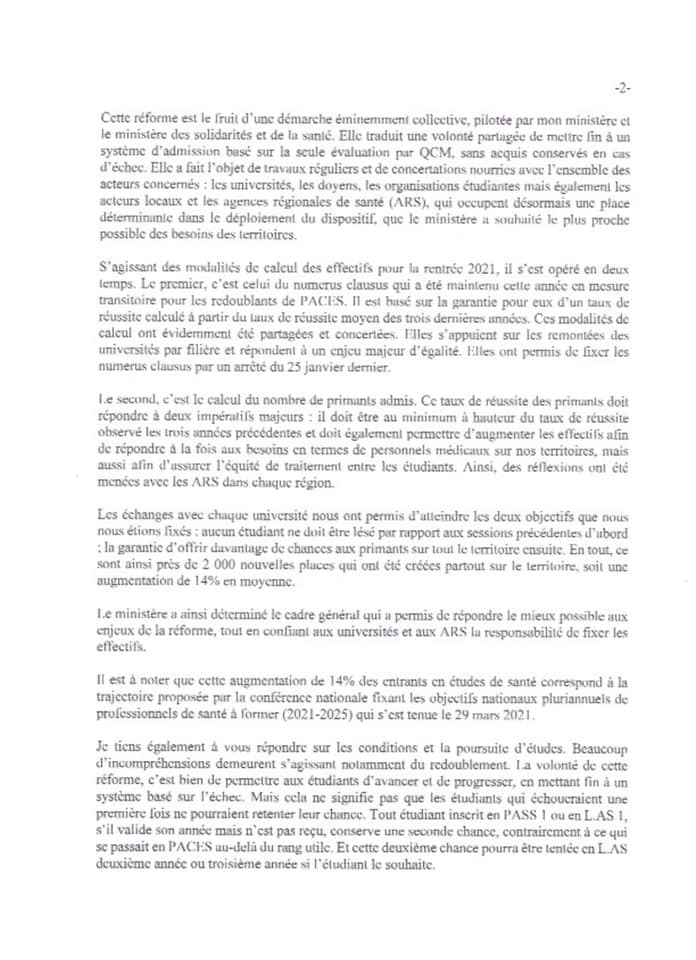 Nous n’acceptons pas que la promotion 2020/2021 soit sacrifiée en terme de chance de réussite, puisque les primants de cette année doivent partager les places avec les redoublants de PACES alors qu’ils n’ont pas le droit de redoubler et que les modalités de la seconde chance sont inconnues.