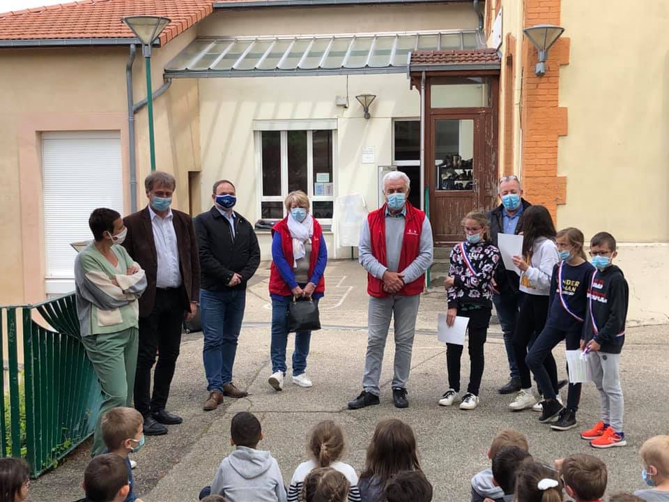 Avec le Maire Marc Chavanne, les adjoints Catherine Chammas, Christian Imbert, le conseiller municipal délégué Thierry Chalancon, les représentants du Conseil Municipal des Jeunes, les élèves de l’école du Fay, leurs enseignantes nous avons inauguré vendredi le point de collecte de bouchons au profit des enfants malades, au profit de l’association « Le Père Noël du lundi », en présence des responsables de l’association.