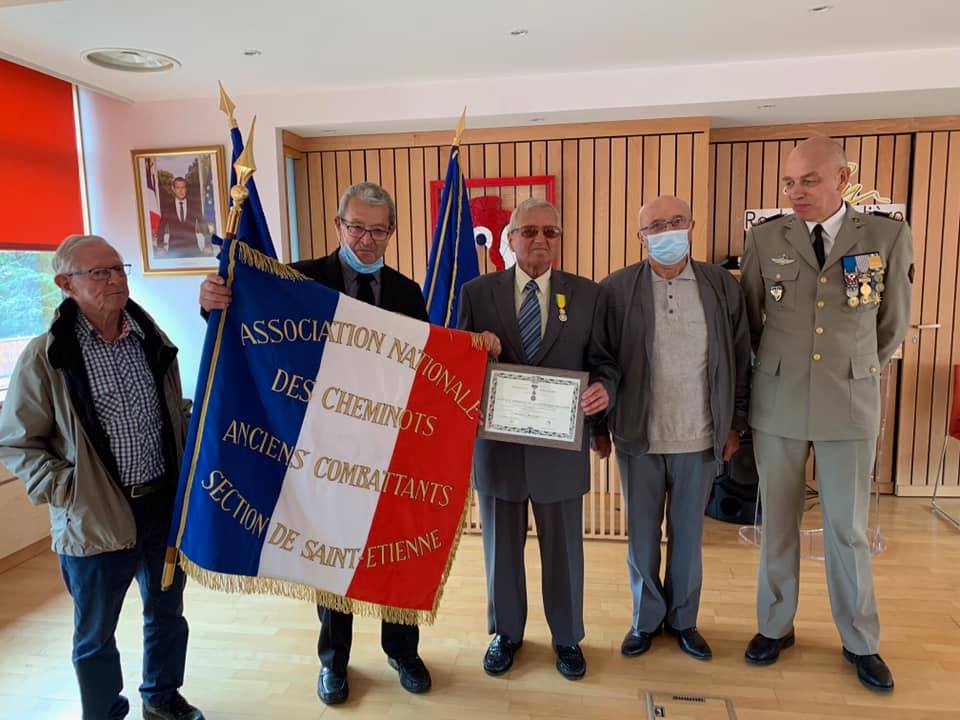 C’est en petit comité à la mairie de Roche-la-Molière avant une célébration officielle lors de la cérémonie du 14 juillet ce matin, entouré de sa famille, de ses amis de l’Association Nationale des Cheminots Anciens Combattants que Marcel Gazet a reçu des mains du colonel Bruno Houdart, délégué militaire départemental de la Loire, sa médaille militaire.