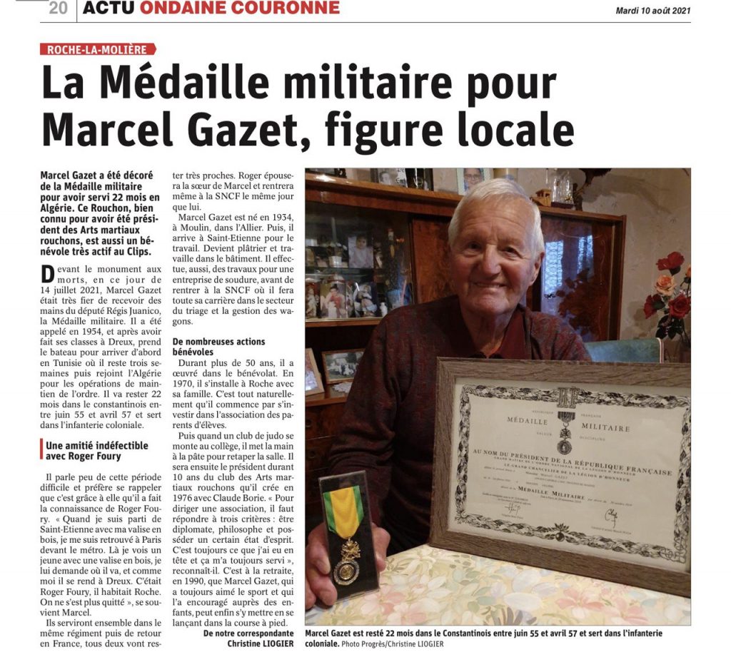 Marcel Gazet a été décoré de la Médaille militaire pour avoir servi 22 mois en Algérie. Ce Rouchon, bien connu pour avoir été président des Arts martiaux rouchons, est aussi un bénévole très actif au Clips. Lire la suite