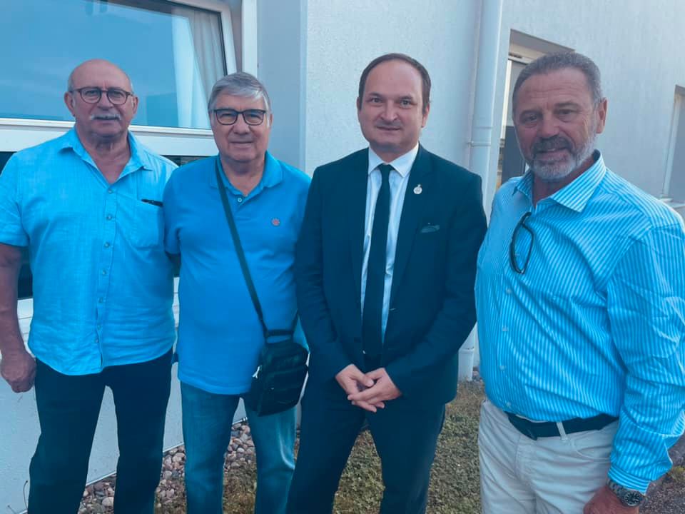 Avec Jean-Michel Larqué, Claude Puel, Dominique Rocheteau, Pierre Repellini, Christian Lopez, Alain Merchadier, Gérard Janvion, Hervé Revelli et le sélectionneur dû Variété Club de France que l’équipe de France des députés affrontera le 23 septembre, Jacques Vendroux …