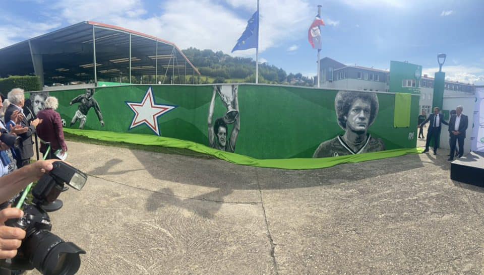 Après un hommage émouvant à Gérard Farison par le co-président de l’ASSE, Roland Romeyer et Jean-Michel Larqué, une fresque en l’honneur de Robert Herbin a été dévoilée au centre d’entraînement qui porte désormais le nom du mythique entraîneur de l’ASSE.