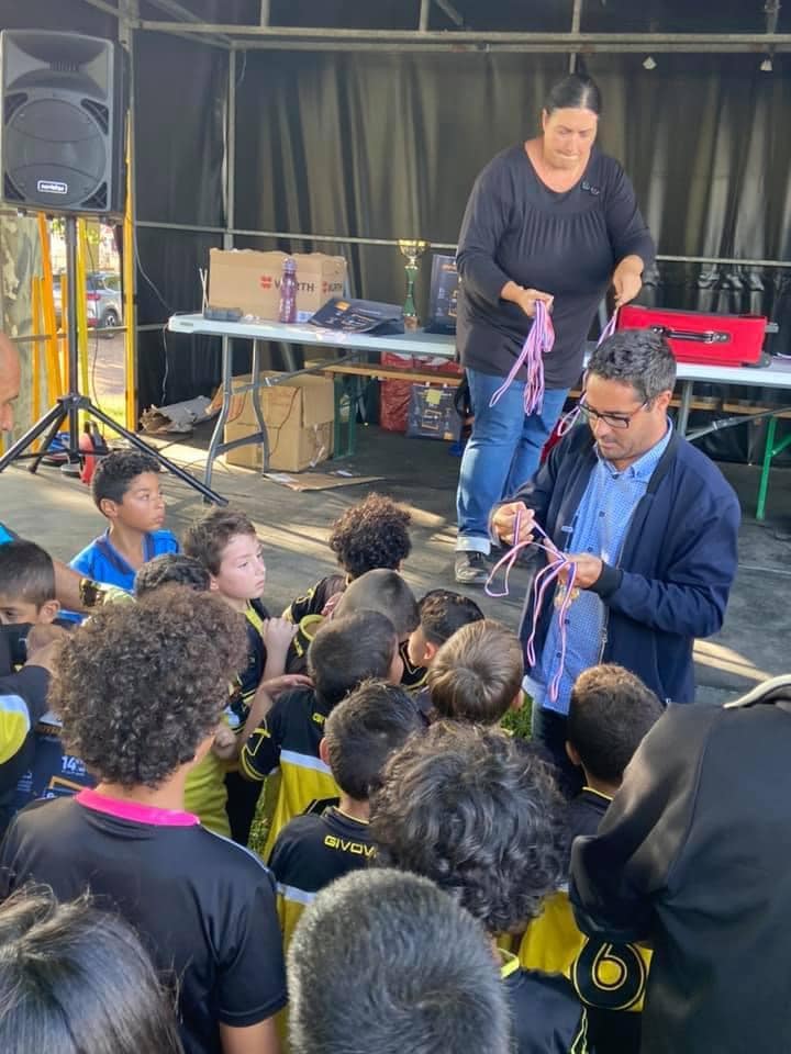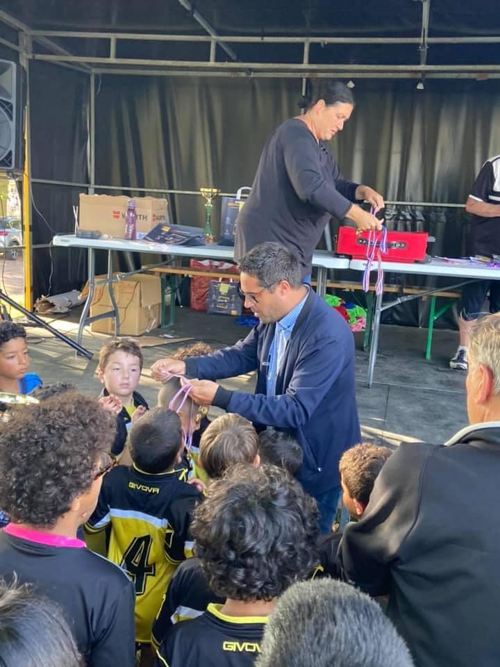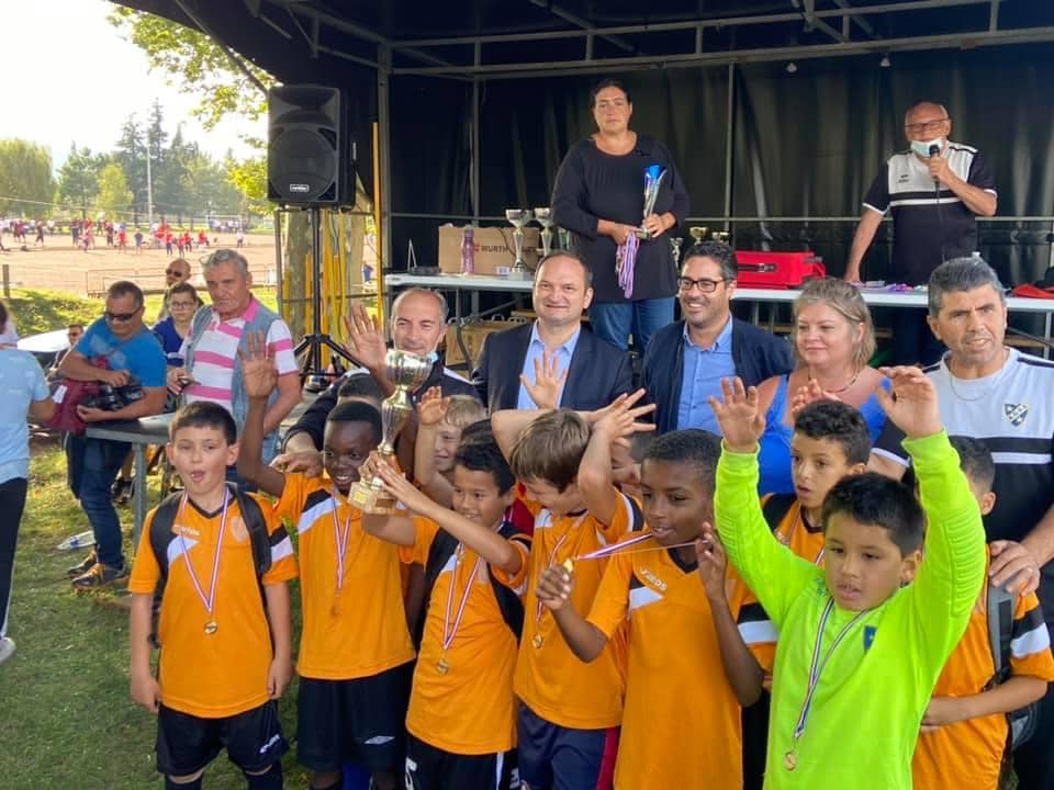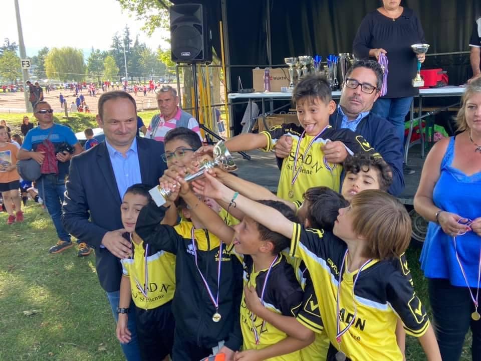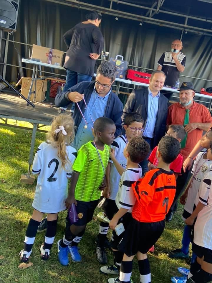 À la remise des récompenses du tournoi U7-U9-U11 du club de l’Avant-Garde de Saint-Etienne, avec Pierrick Courbon : bravo aux bénévoles, aux arbitres, aux nombreuses équipes engagées à l’occasion de cette très belle journée sur les terrains de Méons, dans la bonne humeur et le plaisir de se retrouver ballon au pied !