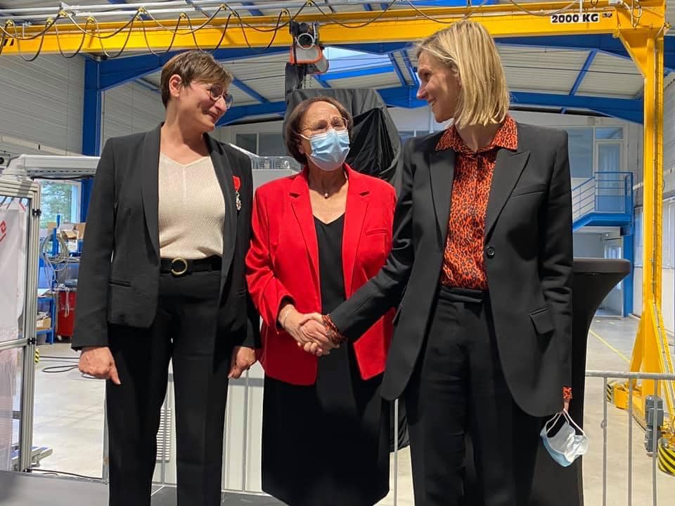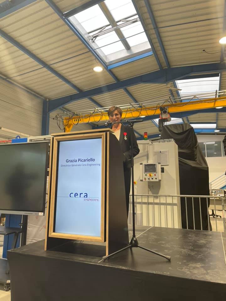 Grazia Picariello, directrice générale de CERA Engineering est élevée au grade de chevalier de la Légion d’Honneur par la ministre déléguée à l’industrie, Agnès Pannier-Runacher dans les locaux de son entreprise à Villars, rue du 8 mai 1945.