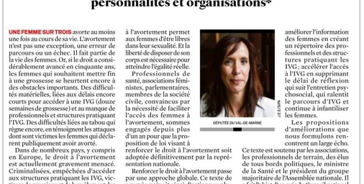 “Nous, parlementaires, professionnel.le.s, représentant.e.s d’associations, membres de la société civile, appelons l’ensemble de la représentation nationale et le Gouvernement à s’engager résolument en faveur du droit des femmes à disposer de leurs corps.”