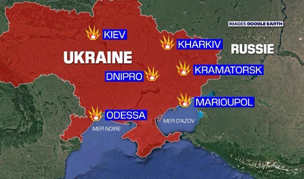 Vous affichez avec raison la carte de l’Ukraine contenant la Crimée et les prétendues « républiques du Donbass » occupées par Poutine depuis 2014.
