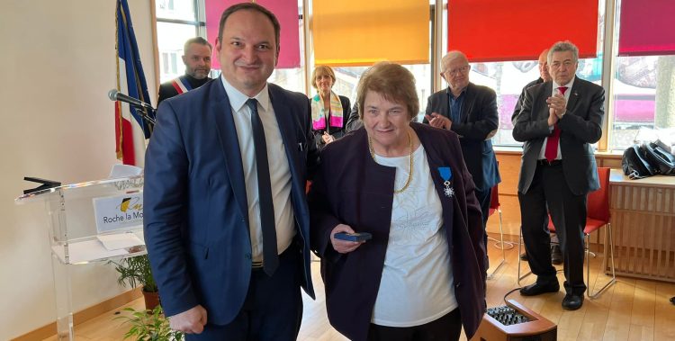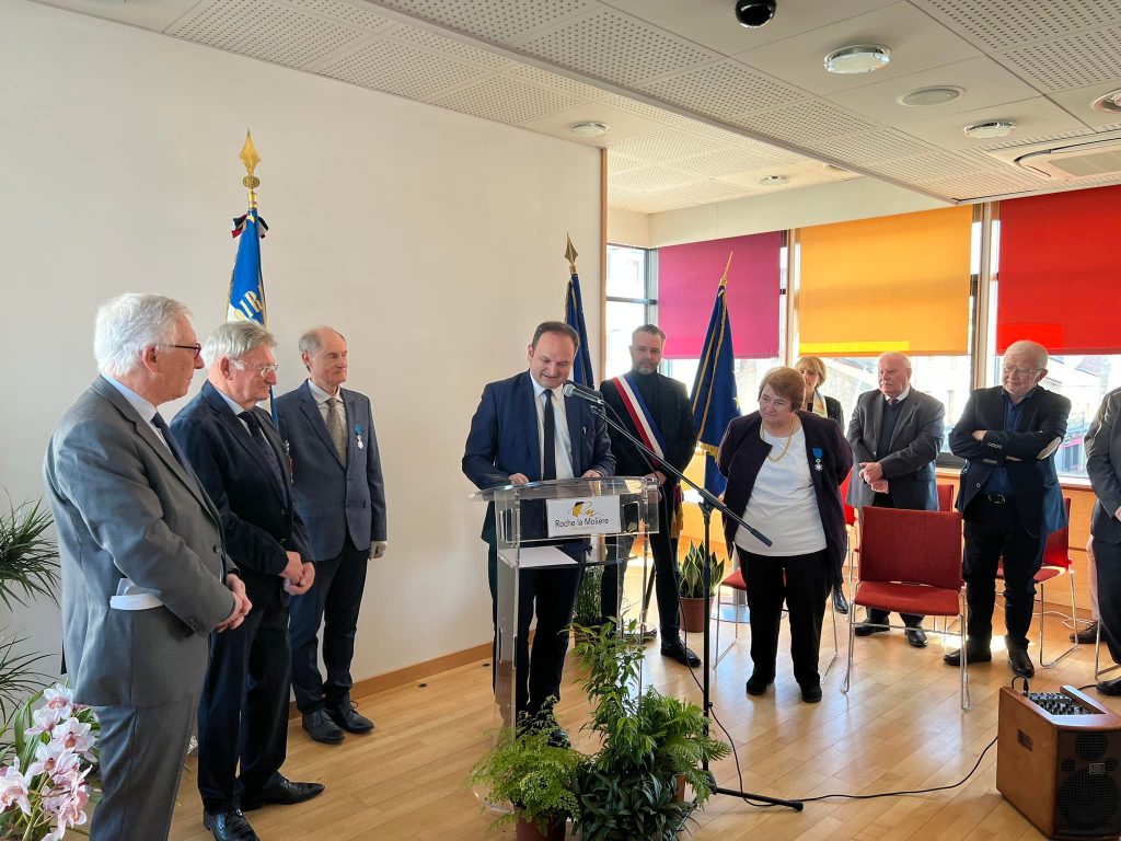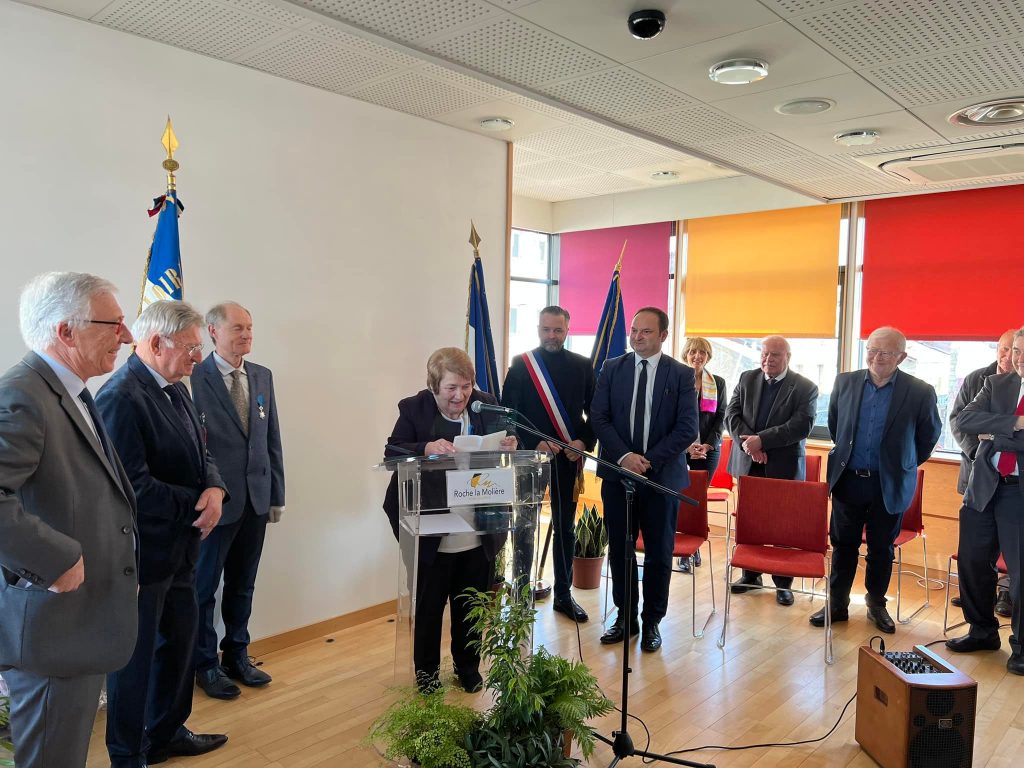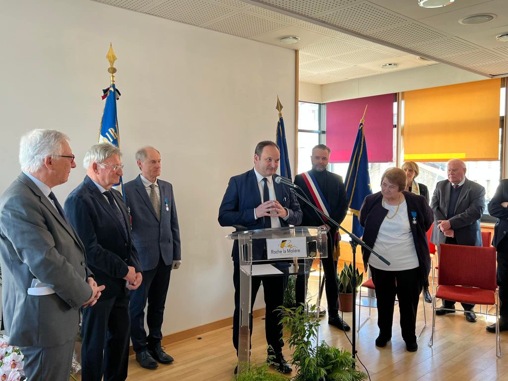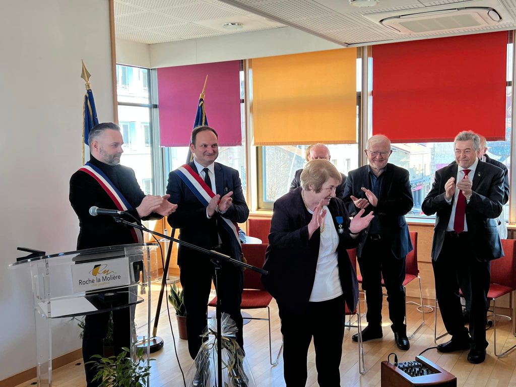 C’est entourée de ses amis, de sa famille, de ses anciens collègues élus dans la salle des mariages et du Conseil Municipal de Roche-la-Molière, où elle a exercé les mandats d’Adjointe de 1989 à 2003 puis Maire de 2003 à 2014, que Marie-Hélène Sauzéa a reçu des mains de Michel Thiollière, ancien Sénateur-Maire et Président de Saint-Etienne Métropole les insignes de chevalier de l’Ordre National du Mérite et de mes mains la médaille de l’Assemblée Nationale.