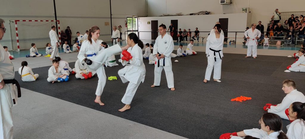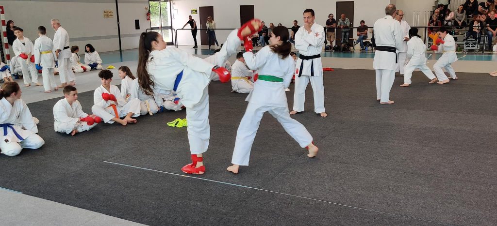 Après un échauffement de préparation technique d’une heure avec les professeurs, les équipes dans les catégories poussins à cadets se sont affrontées dans un combat « open » par équipes mixtes où les débutants comme les karatékas avertis ont pu faire plusieurs combats amicaux et améliorer leur stratégie martiales.