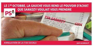 Suppression de la TVA Sarkozy Le gouvernement Sarkozy – Fillon avait voté une hausse de la TVA pour le 1er octobre 2012. Dès son arrivée, la gauche a annulé cette hausse injuste de 1,6% de la TVA qui aurait pénalisé les classes populaires et moyennes. Le changement, c’est abroger une mesure injuste et infondée … Lire la suite
