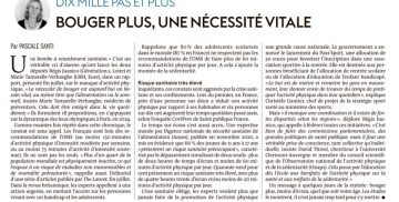 Un grand merci à la journaliste du quotidien Le Monde Pascale Santi d’évoquer dans sa chronique « Dix mille pas et plus » ce jour notre rapport parlementaire avec ma collègue députée Marie Tamarelle-Verhaeghe : « Sédentarité : désamorcer une bombe à retardement sanitaire ». Le détail : « Une bombe à retardement sanitaire. » … Lire la suite
