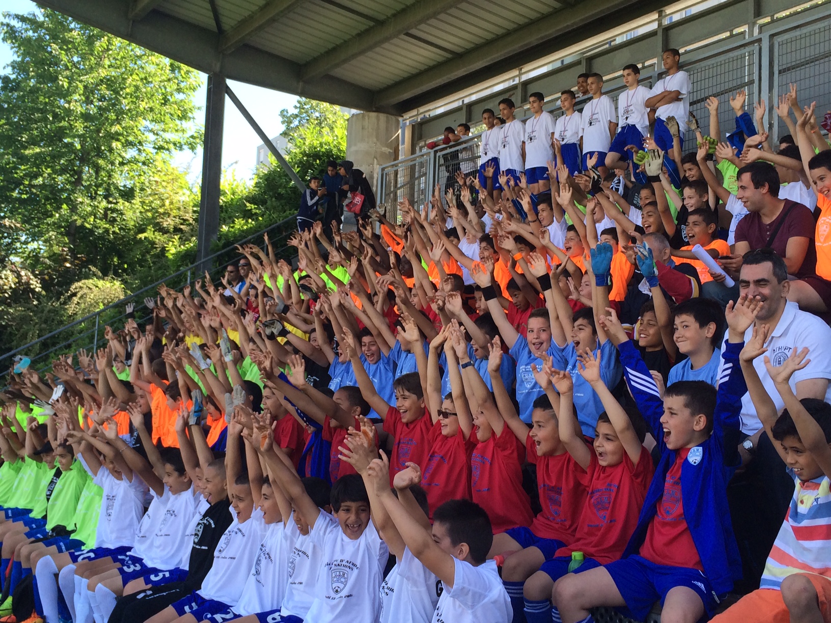 Au coup d’envoi, avec les 16 équipes de jeunes engagées sur ce tournoi.