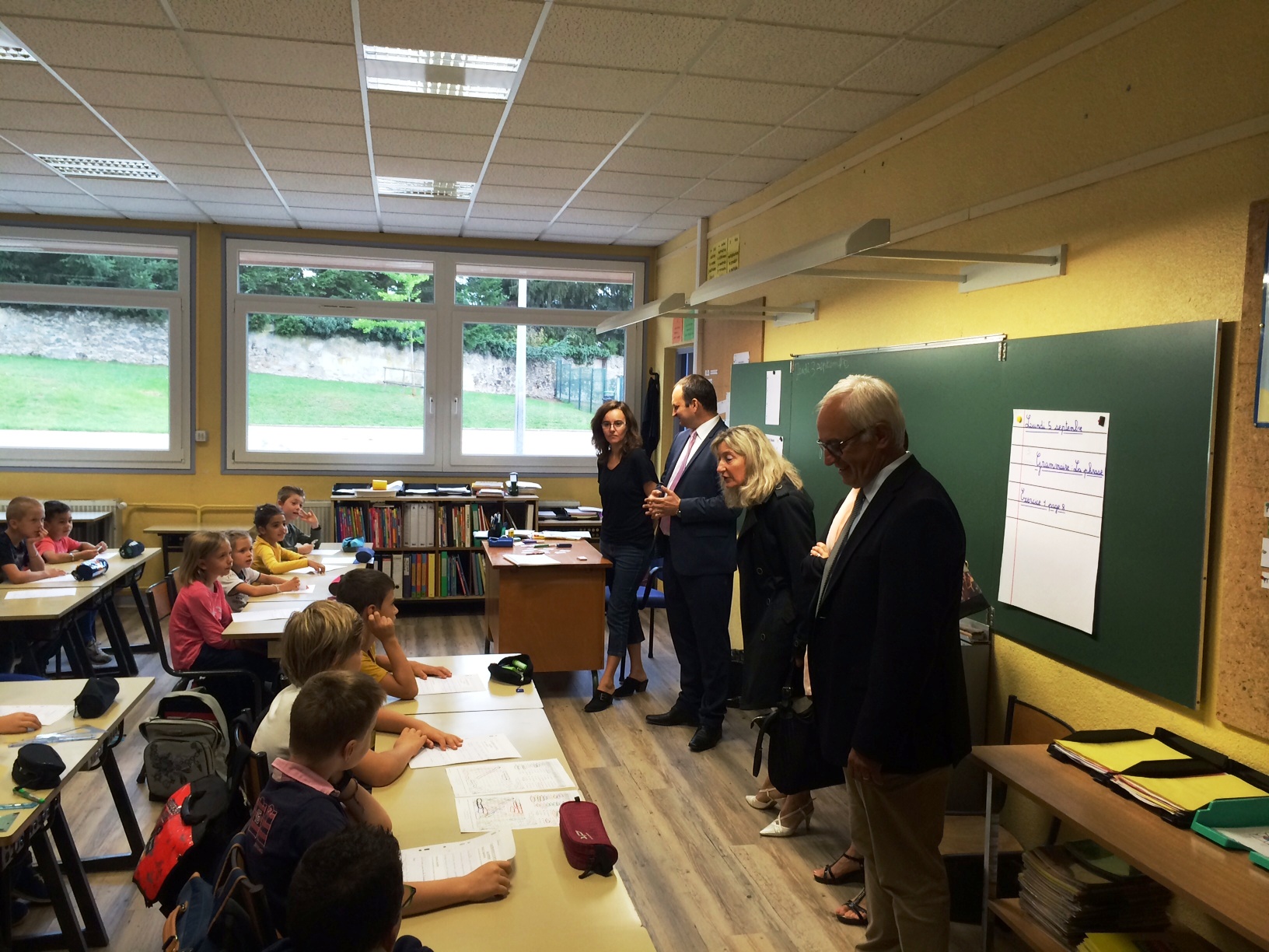 jean ravon2Jeudi matin, c’est en compagnie du Maire de Villars, Paul Celle,  et de l’inspectrice d’académie adjointe, Madame Lutic, que j’ai rendu visite à l’équipe pédagogique de l’école Jean Ravon. La directrice et enseignante en CM2, Madame Tavernier, nous a présenté aux élèves devant chaque classe, dans des locaux spacieux et bien entretenus. Des enfants et des enseignants motivés en ce début d’année scolaire !jean ravon