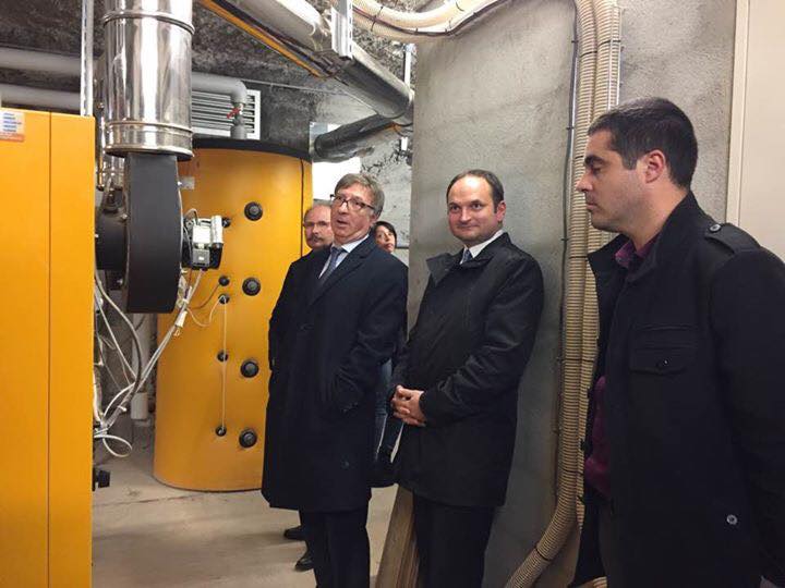 Vendredi soir, Saint-Genest-Lerpt a vu l’inauguration de la chaudière-bois du groupe scolaire Pasteur, en présence du Maire Christian Julien, du Sénateur Bernard Fournier, Président du SIEL, ainsi que de la Conseillère régionale, Laurence Bussière et des Conseillers départementaux. La municipalité lerptienne a en effet décidé de transférer au Syndicat intercommunal d’énergies du département de la Loire la compétence concernant la production et distribution de chaleur du groupe scolaire Pasteur. Cette nouvelle installation est l’une des plus importantes des 48 chaufferies gérées par le SIEL dans la Loire. En vingt ans, la commune devrait économiser 300 000 €, avec une dépense de 19 000 €/an de combustible (granulés) contre 27 685 € de gaz actuellement. Les bâtiments du groupe scolaire Pasteur étaient classés F avec l’ancien système de chauffage. C’est désormais la catégorie C qui est visée.