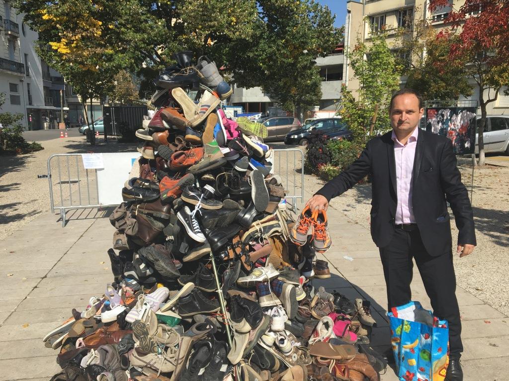J’étais ce samedi 23 septembre, place Jean Moulin à Saint-Etienne, pour apporter mon soutien à Handicap International dans le cadre des 23èmes « Pyramides de chaussures ». Présentes cette année dans 29 villes en France – et pour la première fois à Saint-Etienne grâce à l’équipe de bénévoles autour de Michel Peyrache – ces « Pyramides » sont le symbole de la journée nationale de mobilisation de la société civile pour les victimes des armes explosives. Celle-ci a pour but d’interpeller les gouvernements pour obtenir l’arrêt des bombardements sur les populations civiles et une assistance des victimes à la hauteur des besoins sur le terrain.