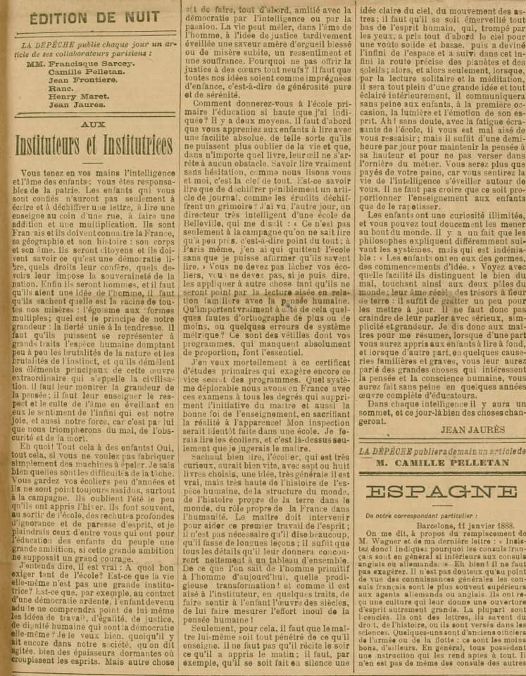 Jean Jaurès, La Dépêche, journal de la démocratie du midi, 15 janvier 1888.
