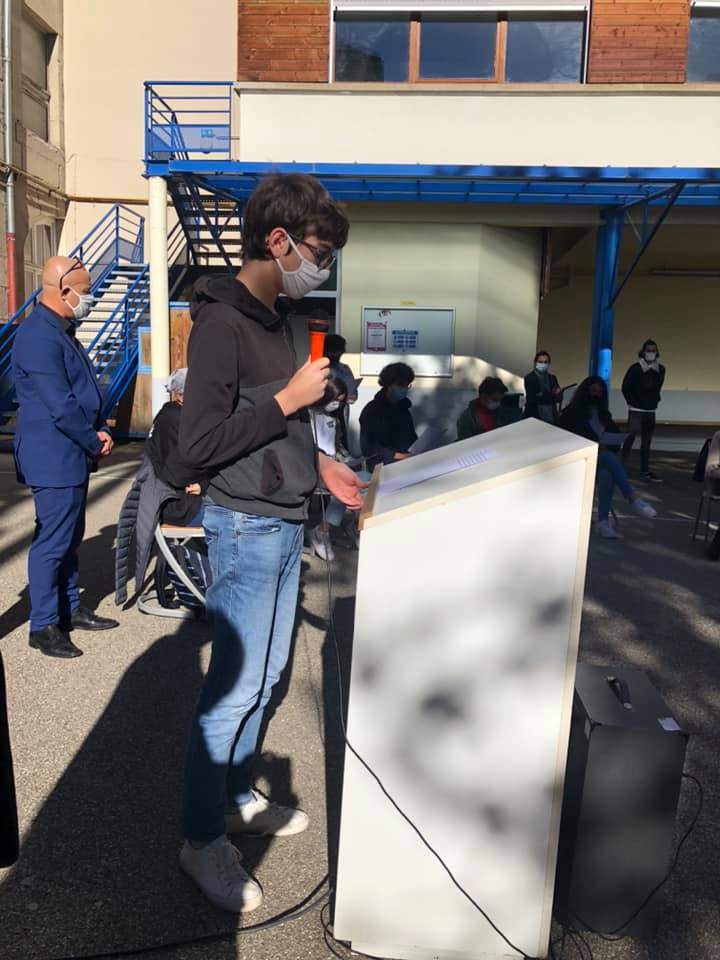J’ai assisté lundi matin, en tant que député, à l’hommage à Samuel Paty au collège Claude Fauriel de Saint-Etienne. A 11 heures, la lettre aux institutrices et instituteurs de Jean Jaurès a été lue dans sa version intégrale par les élèves avant une minute de silence.