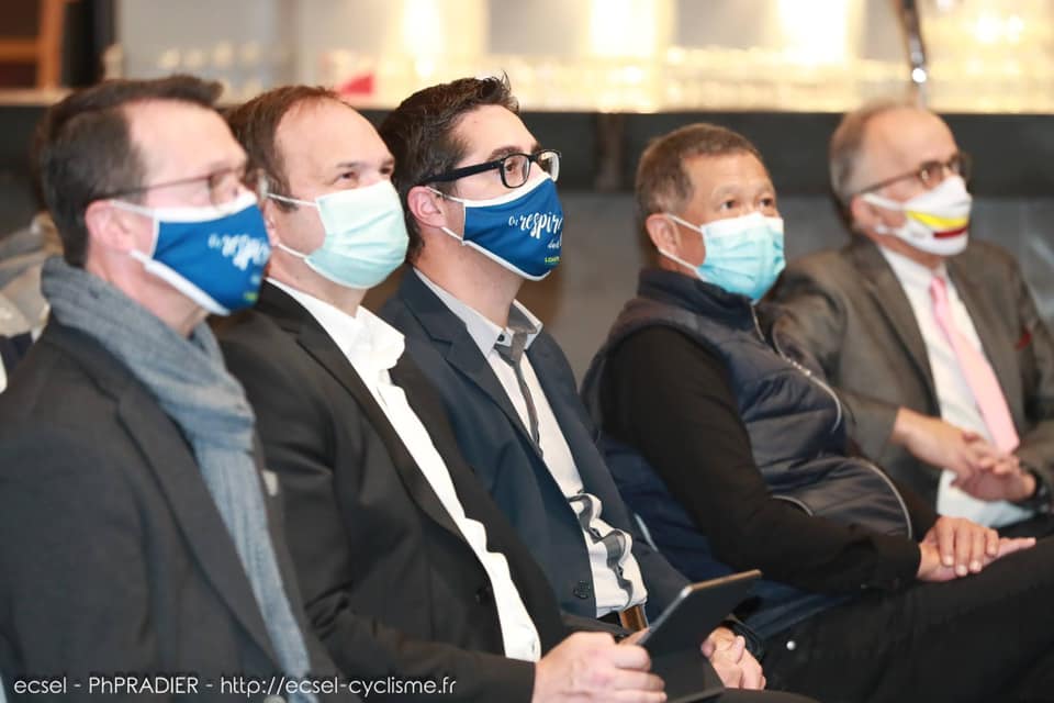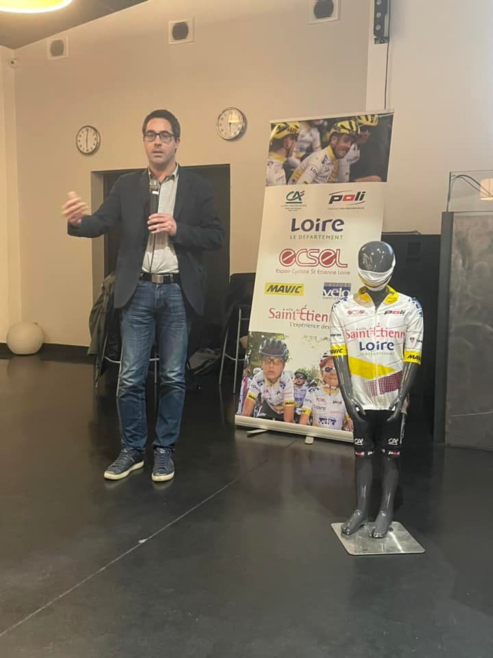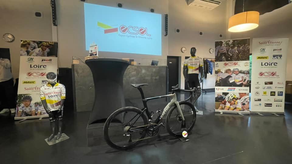 L’un des moment fort fut la présentation de la nouvelle tenue POLI 2022 et du vélo BRETHIL « Service course » de l’équipe élite, made in ECSEL, made in Saint-Etienne, made in Loire.